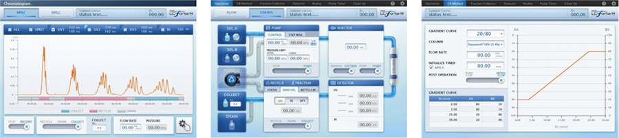LC-Forte/R-IIは、分取HPLCの機能に加えてガラスエンプティカラム、フラッシュクロマトグラフィー用カラムなども存分にご使用いただけるよう設計・ソフト開発した装置です。